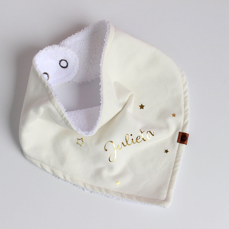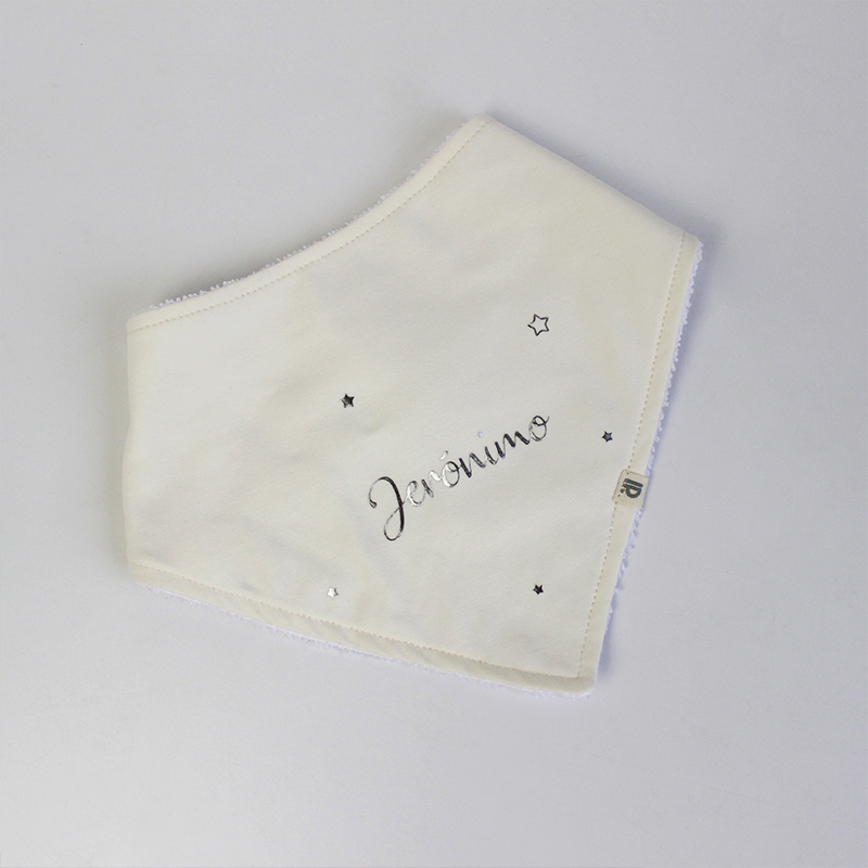 Nuestros baberos tipo Bandana están confeccionados en suave algodón y microfibra absorbente.