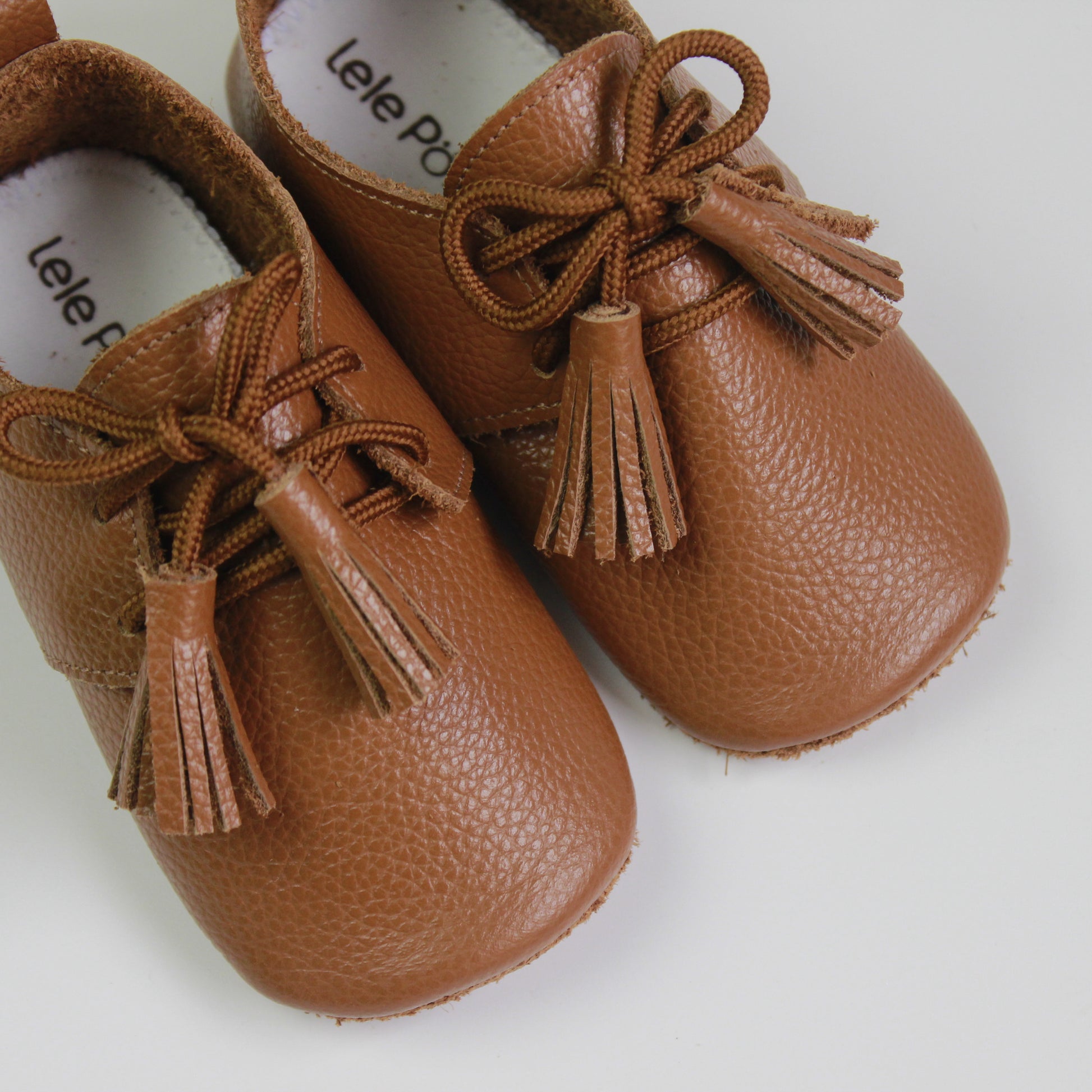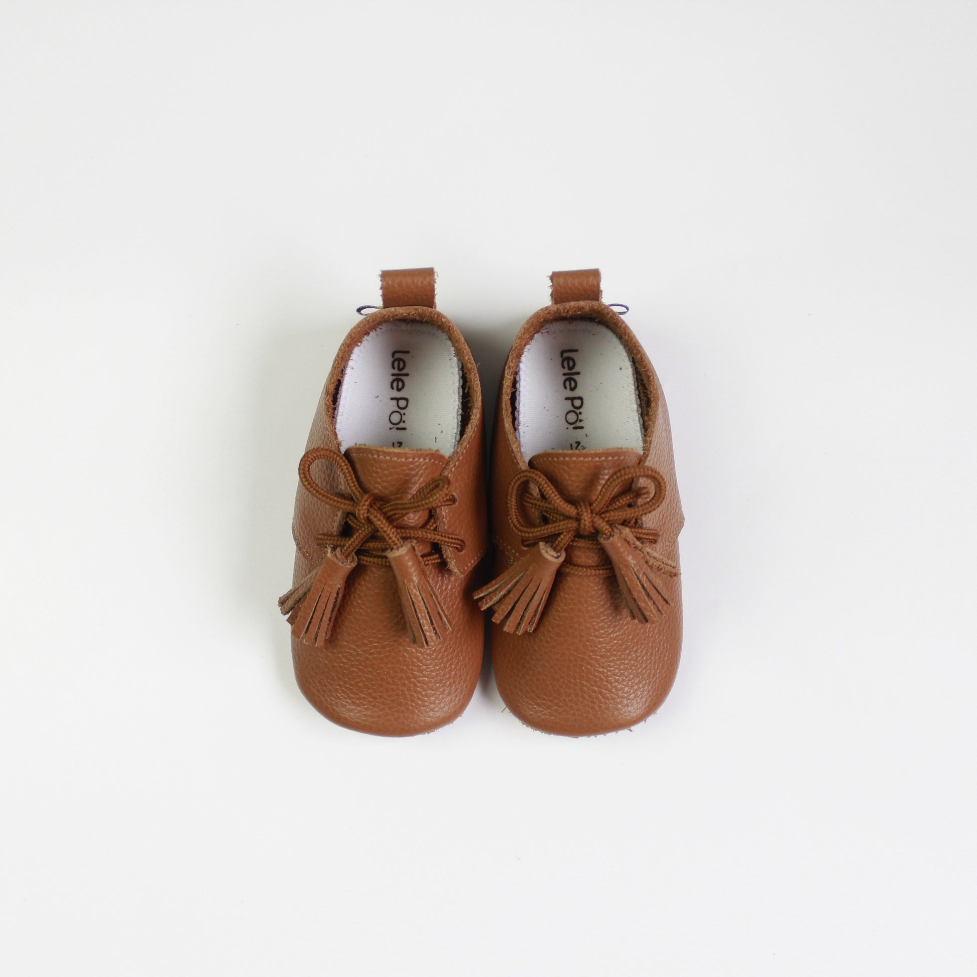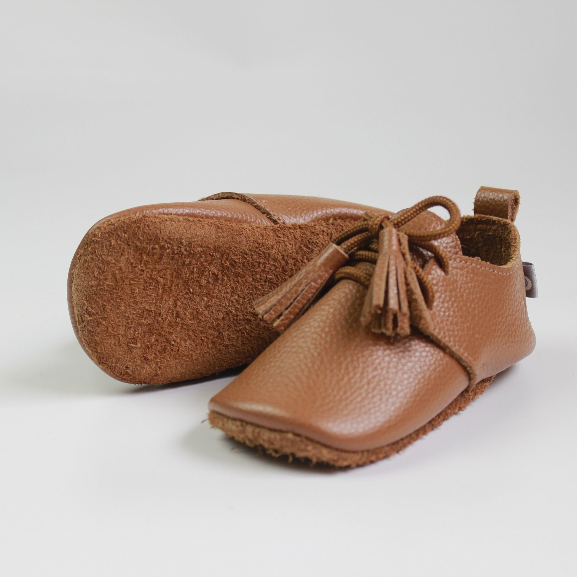 Hechos 100% a mano en cuero genuino. Suaves, flexibles y cómodos, acompañan los primeros pasos de tu bebé con un ajuste seguro y un diseño encantador con borla decorativa.