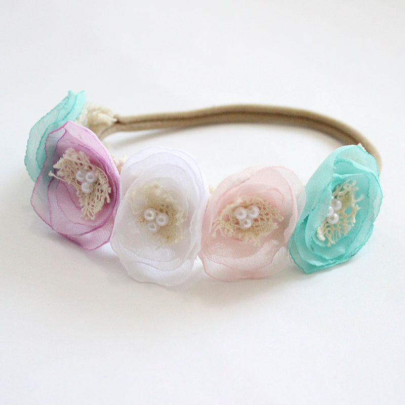 Coronas exclusivas hechas 100% a mano, elaborados en velo botticelli, con banda elástica de nylon suave que se adapta perfectamente sin lastimar.