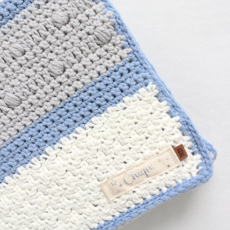 Manta Tejida Ellie Personalizada Crudo, Gris & Azul