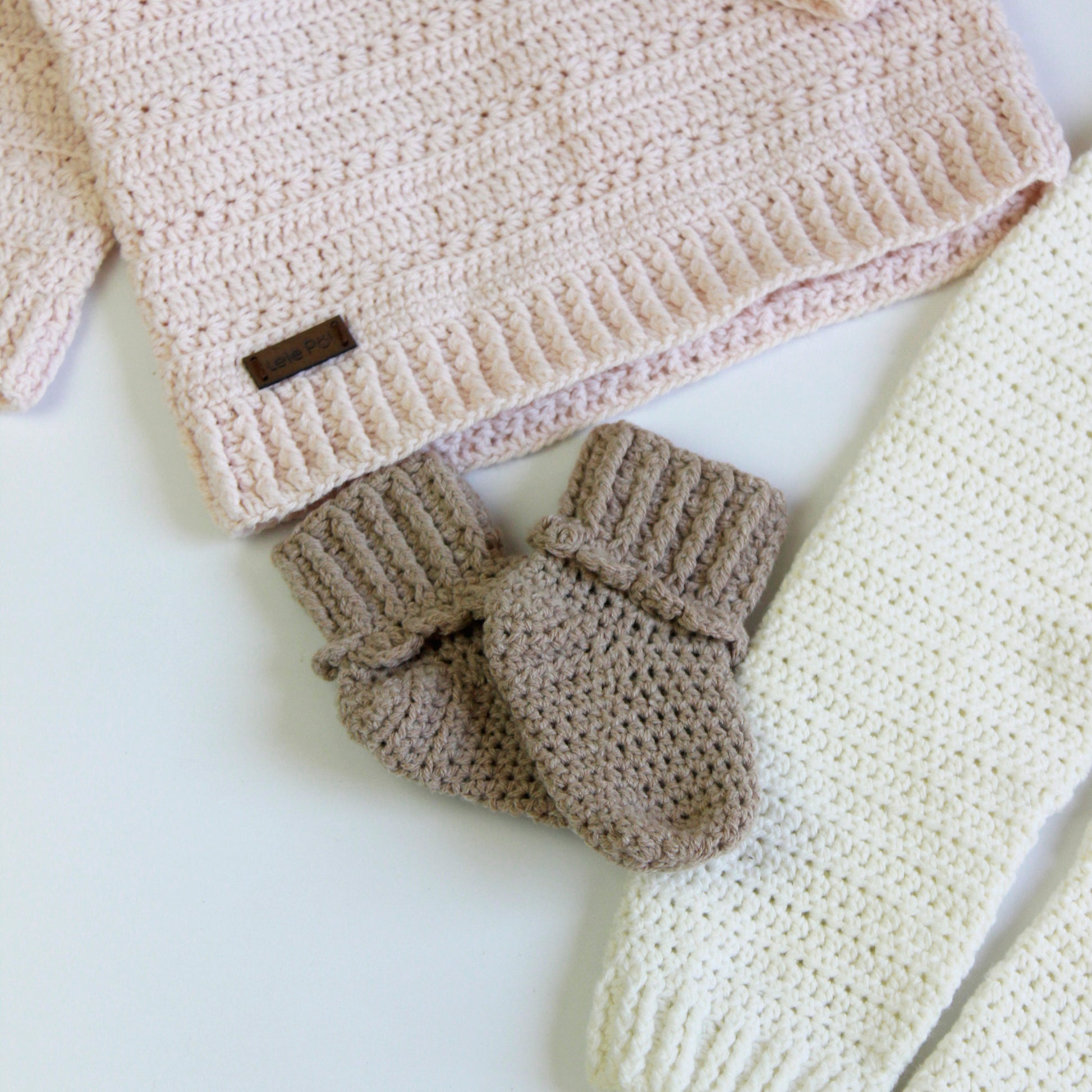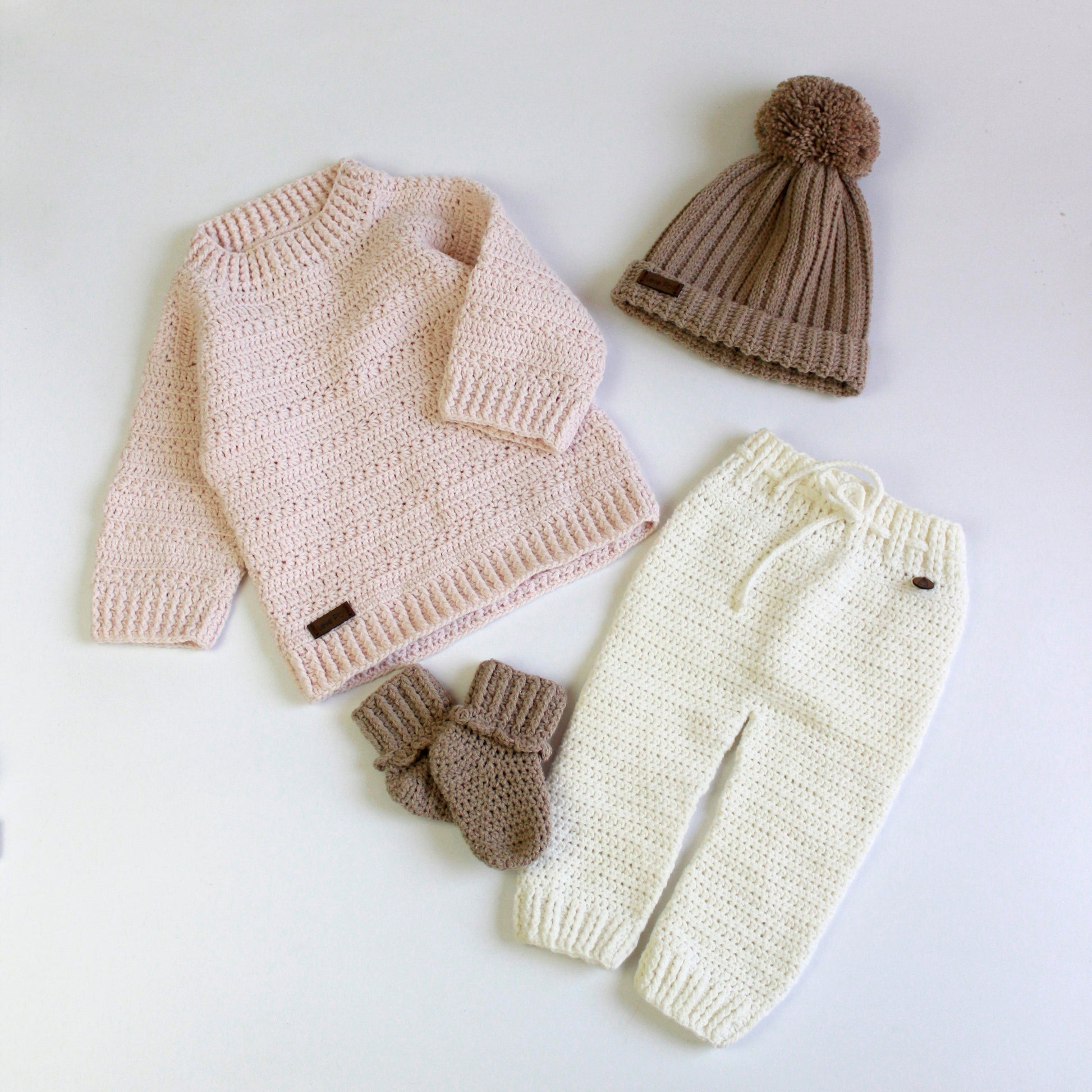Cada una de nuestras prendas tejidas nace de manos artesanas, elaboradas con dedicación y ternura en lanas 100% hipoalergénicas de microfibra y algodón. Diseñadas pensando en el cuidado y la delicadeza que tu bebé merece, son pequeñas piezas de amor hechas exclusivamente para acompañar sus primeros momentos.