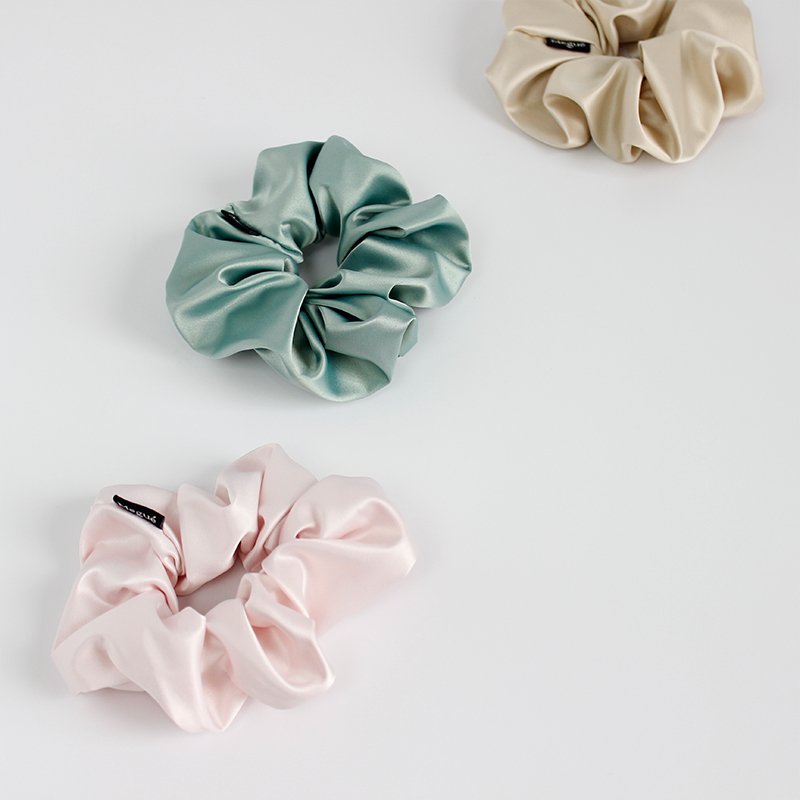 Seda Satinada 100%. Cada Scrunchie tiene un pedacito de amor de cada una de nosotras; Totalmente hecho pensando en ti.